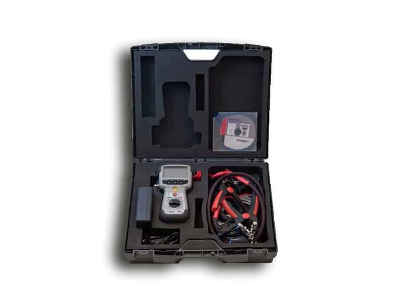 Portátil pesa apenas 1 KG. Seguro realizando medições pelo método tradicional a 4 fios ou utilizando a tecnologia Dual Ground (com os 2 lados a amostra aterrada), possui fácil utilização e versatilidade nos ensaios. Conta com alimentação por Bateria interna Recarregável utilizando-se da Tecnologia de Super Capacitor para geração de Correntes de Testes até 220A.