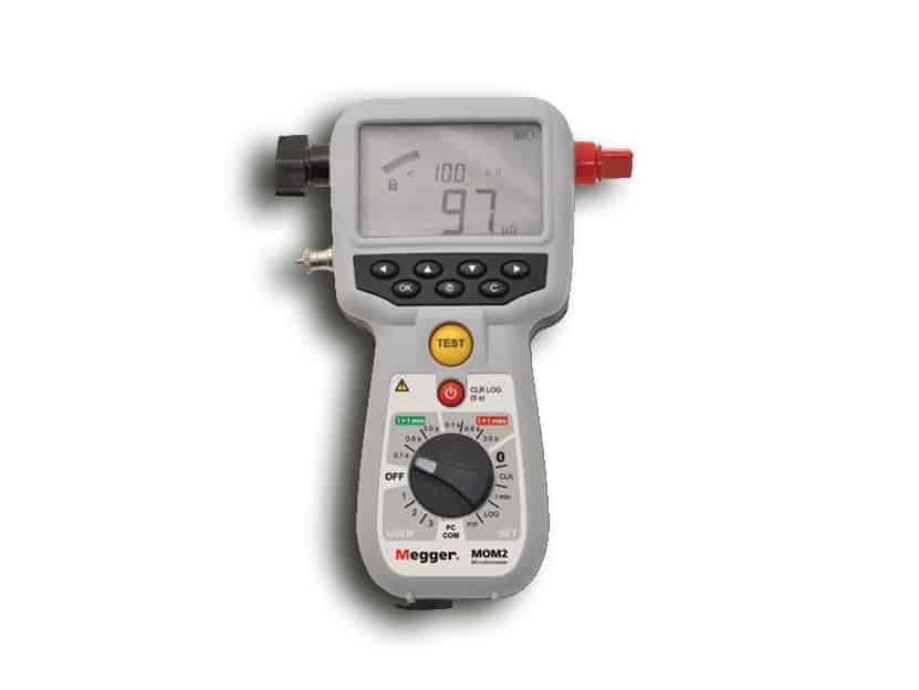 O MOM2 foi projetado para testar a resistência de contatos em disjuntores de alta tensão, seccionadoras, barramentos e conexões.